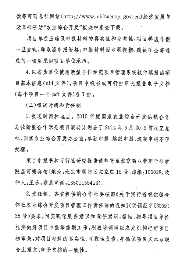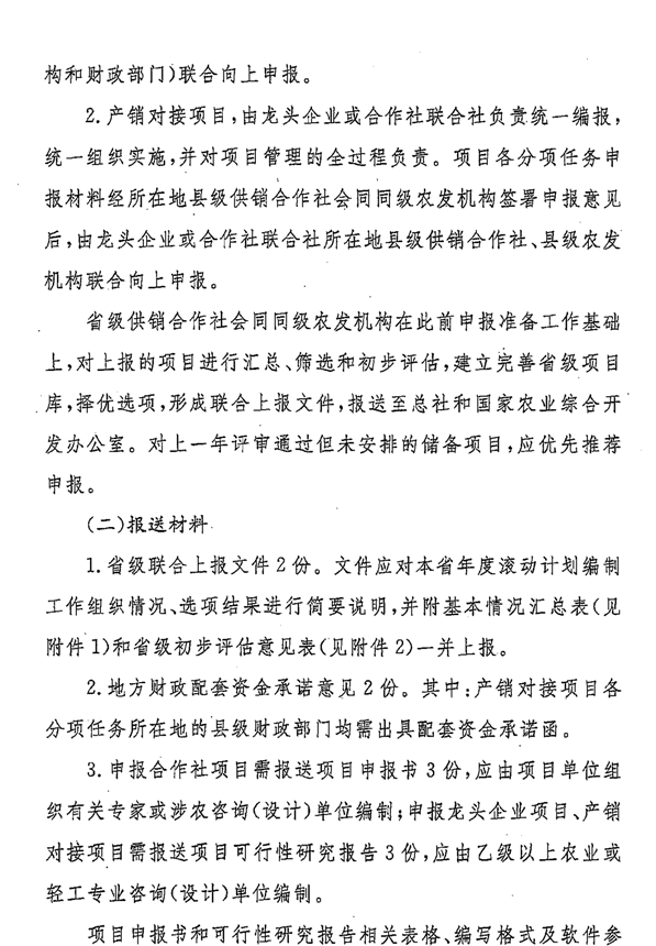 一、项目安排在国家农业综合开发县,有关地级以上市要及时将通知精神传达到国家农业综合开发县(市、区)有关单位,并认真组织符合申报条件的单位按照《供销合作总社新型合作示范年度滚动计划项目编制细则》和本通知要求,精心编制2015年度供销合作总社新型合作示范项目滚动计划。