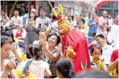 2016年广州工人文化宫举办节日活动,演员与职工互动。郗建新 摄
