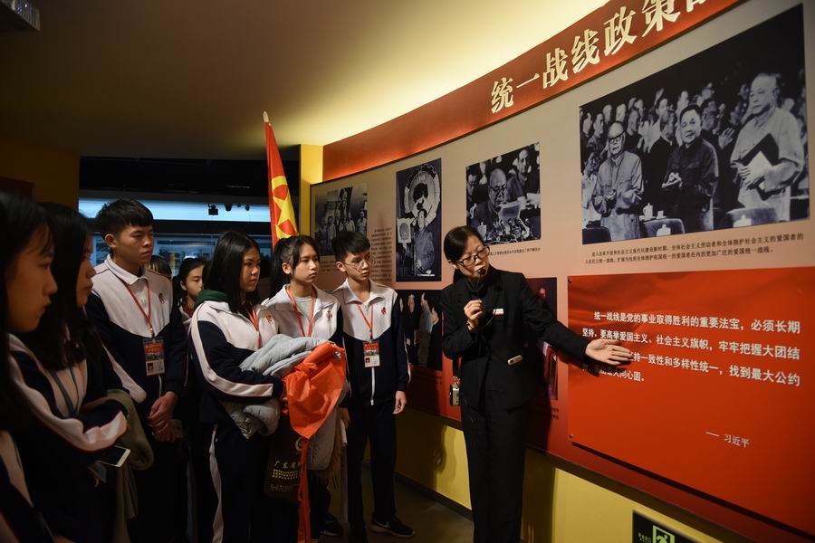 在团一大广场旁边,老师与同学又进入了中华全国总工会旧址中的“团一大史迹展览厅”进行参观,里面陈列了许多以往大会的手写摘录,同学们也看到了中国共青团领导人的笔迹,感触颇深。