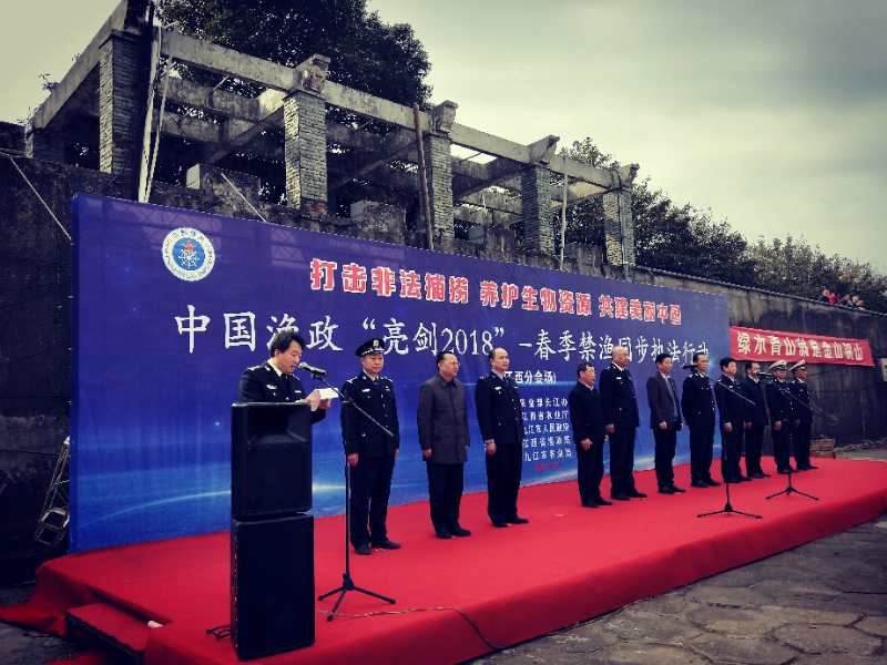 3月1日,农业部长江办、九江市政府和江西省农业厅在九江市联合举办中国渔政“亮剑2018”——春季禁渔同步执法行动启动仪式(江西分会场),这标志着长江湖北、江西、安徽江段同步联合执法行动拉开序幕。