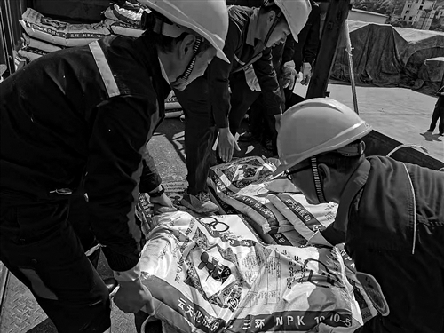 云天化工作人员正在装卸春耕化肥。