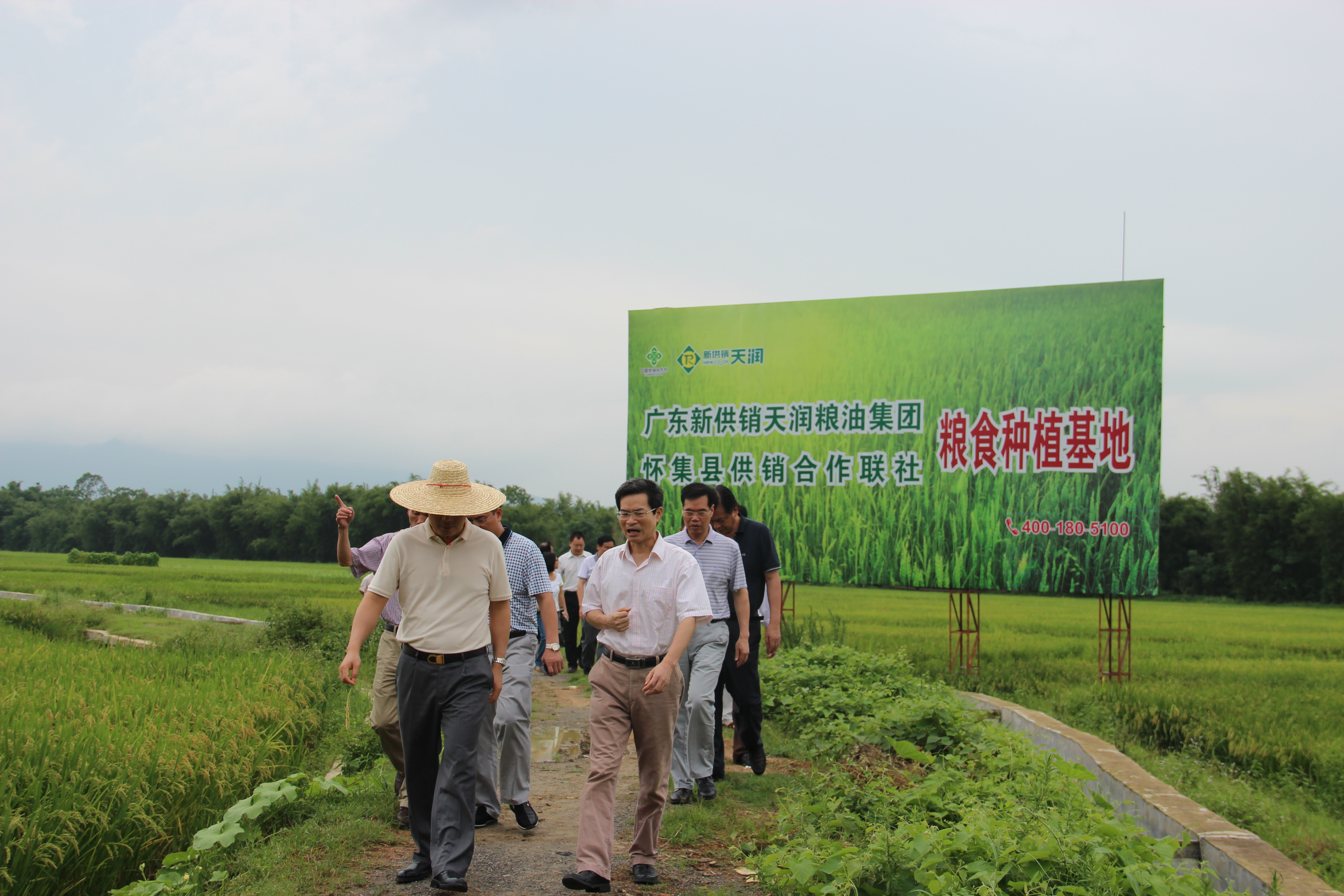 何启环一行先后参观了怀集粮食种植基地、怀集三农综合服务平台,实地察看了1200亩水稻种植基地的生长状况,以及怀集三农综合服务中心购置的拖拉机、旋耕机、撒肥机等一批现代农业设备的筹备情况,详细听取了水稻种植基地的运作模式和三农综合服务平台建设的规划进展情况的介绍。何启环充分肯定了天润粮油集团和怀集县供销社联合在探索农产品经营转型、创新为农服务模式方面所取得的积极成效。他指出要抓住机遇,创新发展,探索建立完整的大米产业供应链,构建可持续的农业社会化服务体系,为全省系统推进专业化、规模化为农综合服务体系建设提供好的典范。