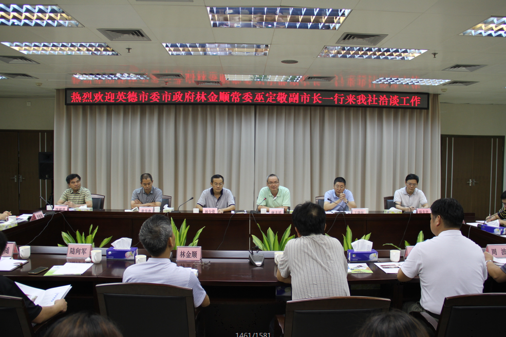 7月24日下午,省社党组成员、理事会副主任林少俊在省社会议室会见英德市委市政府林金顺常委、巫定敬副市长一行,并就农村合作金融有关对接工作进行了洽谈。粤合控股公司董事长康志滔、总经理黄华鑫、副总经理王晓林,省社财会处、科工处负责人参加会见。