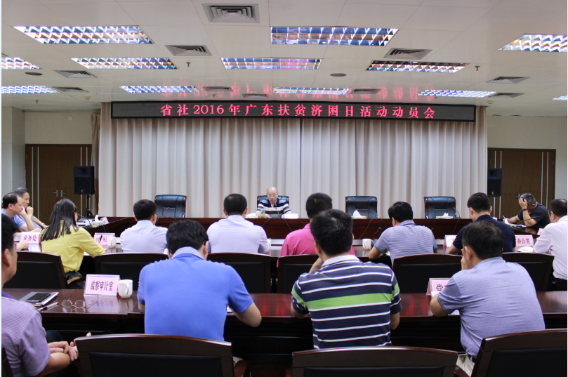 6月16日上午,为贯彻落实省委、省政府2016年广东扶贫济困日活动工作要求,省社召开广东扶贫济困日活动动员会。省社党组成员、巡视员周根旺主持并作动员讲话。省社直属各单位(含中农广州公司,下同)分管领导、人事部门负责人和机关各处室负责同志参会。