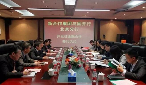 10月13日,国家开发银行北京分行行长徐明、副行长马东祺率该行相关部门人员到访新合作集团,双方签署了总额50亿元的开发性金融合作协议,支持新合作集团中长期项目建设和产业链整合并购等业务。