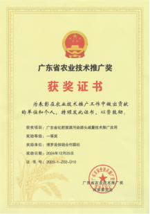 基于过去三年来扎实的工作基础和显著的防控成果,2024年,博罗县供销社作为主要参与单位,以《广东省化肥面源污染源头减量技术推广应用》项目申报了2023年度广东省农业技术推广奖。2024年12月25日,广东省农业农村厅发布了《关于2023年度广东省农业技术推广奖获奖项目的通报》(粤农农函〔2024〕1535号),该项目荣获了单位和个人一等奖。