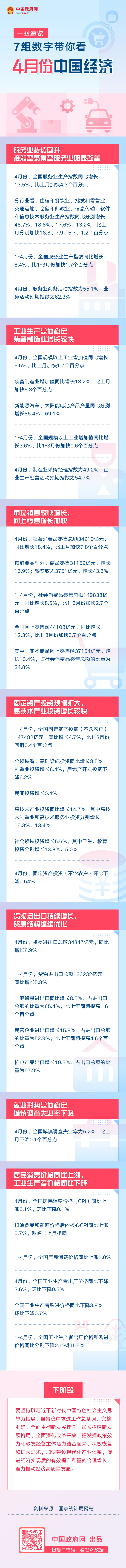 一图速览:7组数字带你看4月份中国经济