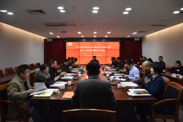12月29日下午,新供销商贸公司在公司总部会议室召开2017年度股东大会。新供销商贸公司各股东代表、第三届董事会、第三届监事会、第四届董事会和第四届监事会成员,新供销商贸公司各高管、天润粮油集团和天保再生资源集团领导,以及广东正中珠江会计事务所、广东君直律师事务所等机构相关人员参加了会议。