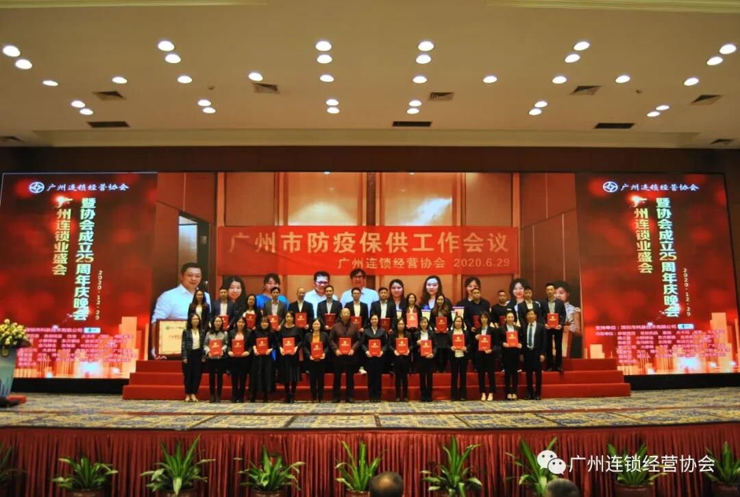 2020年12月29日下午,广州市供销社农产品经营有限公司作为会员单位出席参加了广州连锁经营协会五届四次会员大会暨庆祝协会成立25周年晚会。会上广州市供销社农产品经营有限公司荣获了“2020年度广州市优秀企业”和“2020年度抗疫保供积极单位”称号。