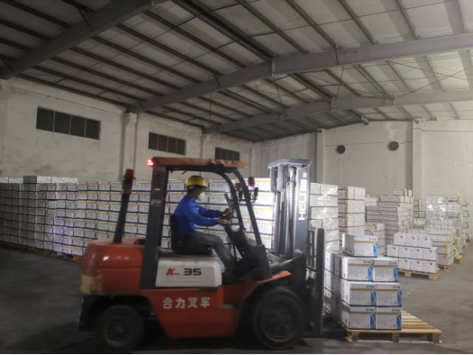广东天禾下属农药生产与分装子公司的仓库夜间出货
