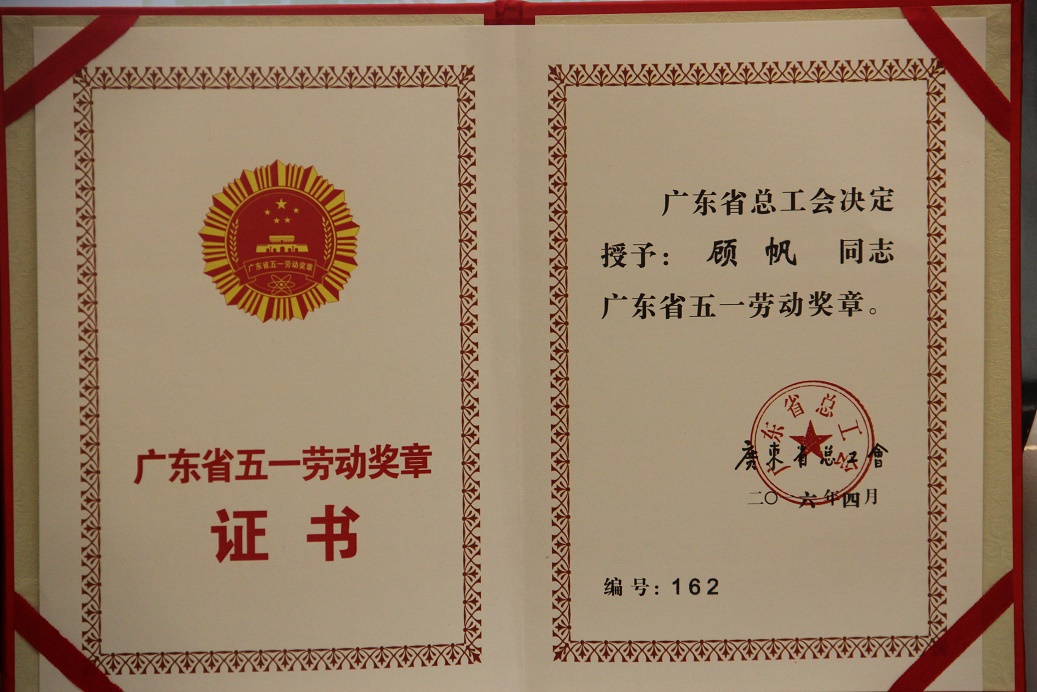 2016年4月27日,广东省庆祝“五一”国际劳动节暨劳模表彰大会在广州举行。天润粮油集团顾帆同志荣获本年度广东省五一劳动奖章,在平凡岗位上彰显着不平凡。