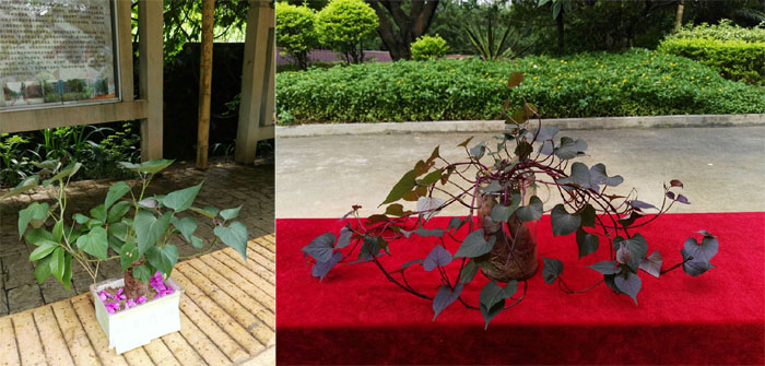 《静观·青春》番薯盆栽大赛作品赏评活动于6月14日下午在校园文化长廊举行。参赛作品要求选手从番薯的种植到栽培,再到赏评全程参与,整个过程为期一个多月,灌注了选手们精心培育的心血。赏评活动吸引了大批师生驻足围观,受到广大师生的好评。