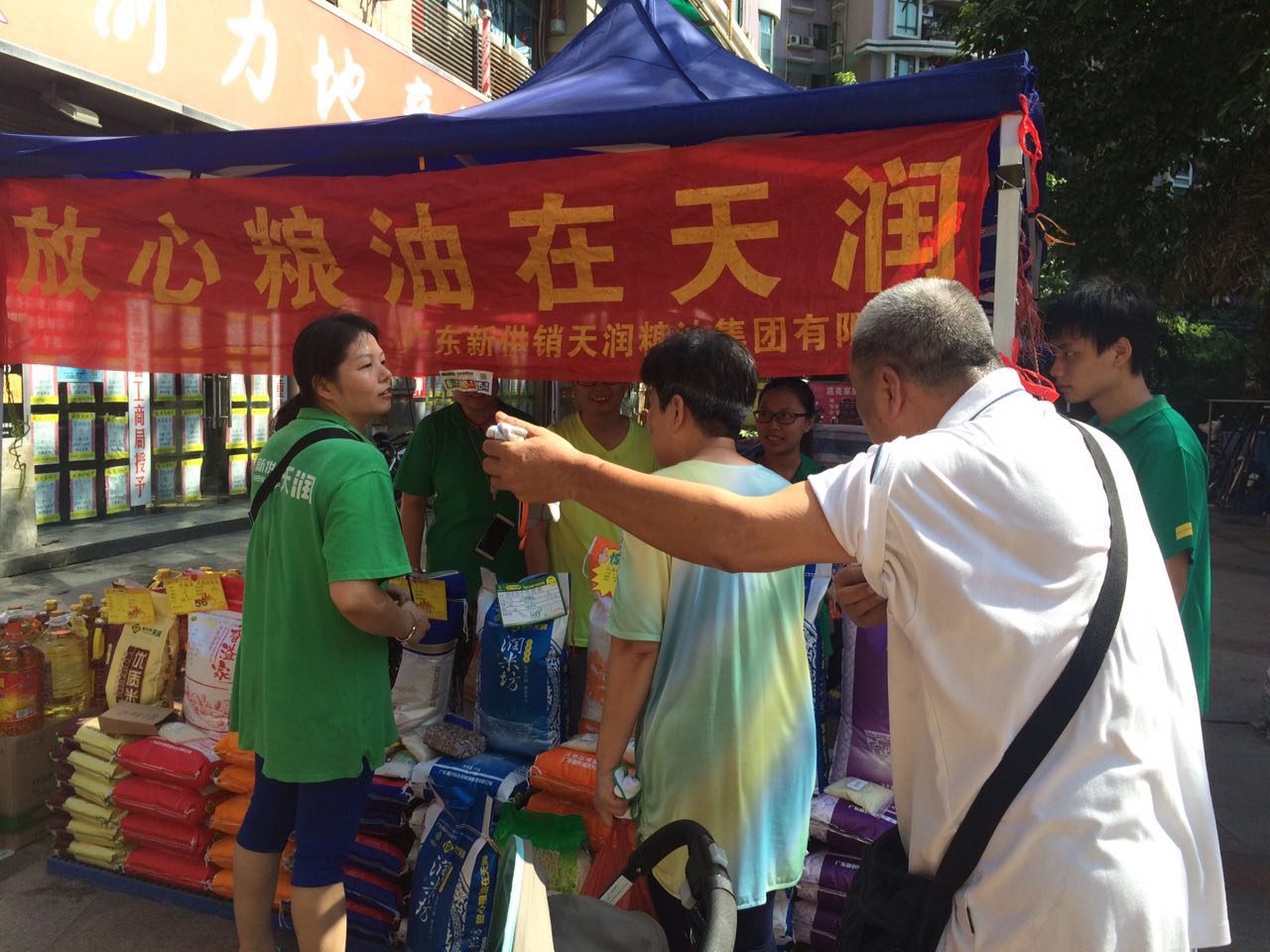 2016年7月23-24日,广东新供销天润粮油集团有限公司在16个生活小区同时开展社区活动。尽管天气炎热,但各位员工依然坚守在社区活动的第一线,热情接待每一位客人。销售活动现场火爆,顾客络绎不绝。