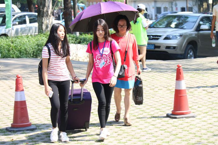 校内学生志愿者衣着鲜明划一,为新生提供热情服务,搬运行李,指引报到流程,直到新生完成报到入住宿舍。新生班主任更是精神饱满,亲切接待每位学生,不仅与学生组建QQ、微信交流群,还和学生家长组建微信交流群,确保交流畅通。