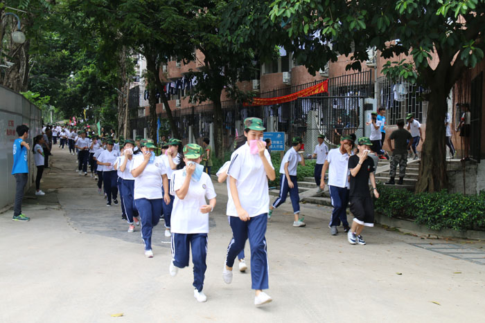 在演练开始前,黄埔青少年军校朱志威教官进行了详细说明,反复叮嘱演练注意事项,特别强调新生们要带好毛巾,有秩序地快步疏散。演练过程中,新生们秩序井然,听从老师和教官的指挥,迅速而安静地疏散到操场,总共用时7分钟。