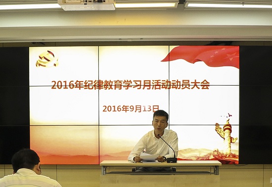 2016年9月13日下午,公司党委在公司本部大楼12楼培训中心召开了2016年纪律教育学习月活动动员大会。公司党委、纪委、经营班子成员,以及全体党员、中层以上干部共66人参加了此次动员大会。