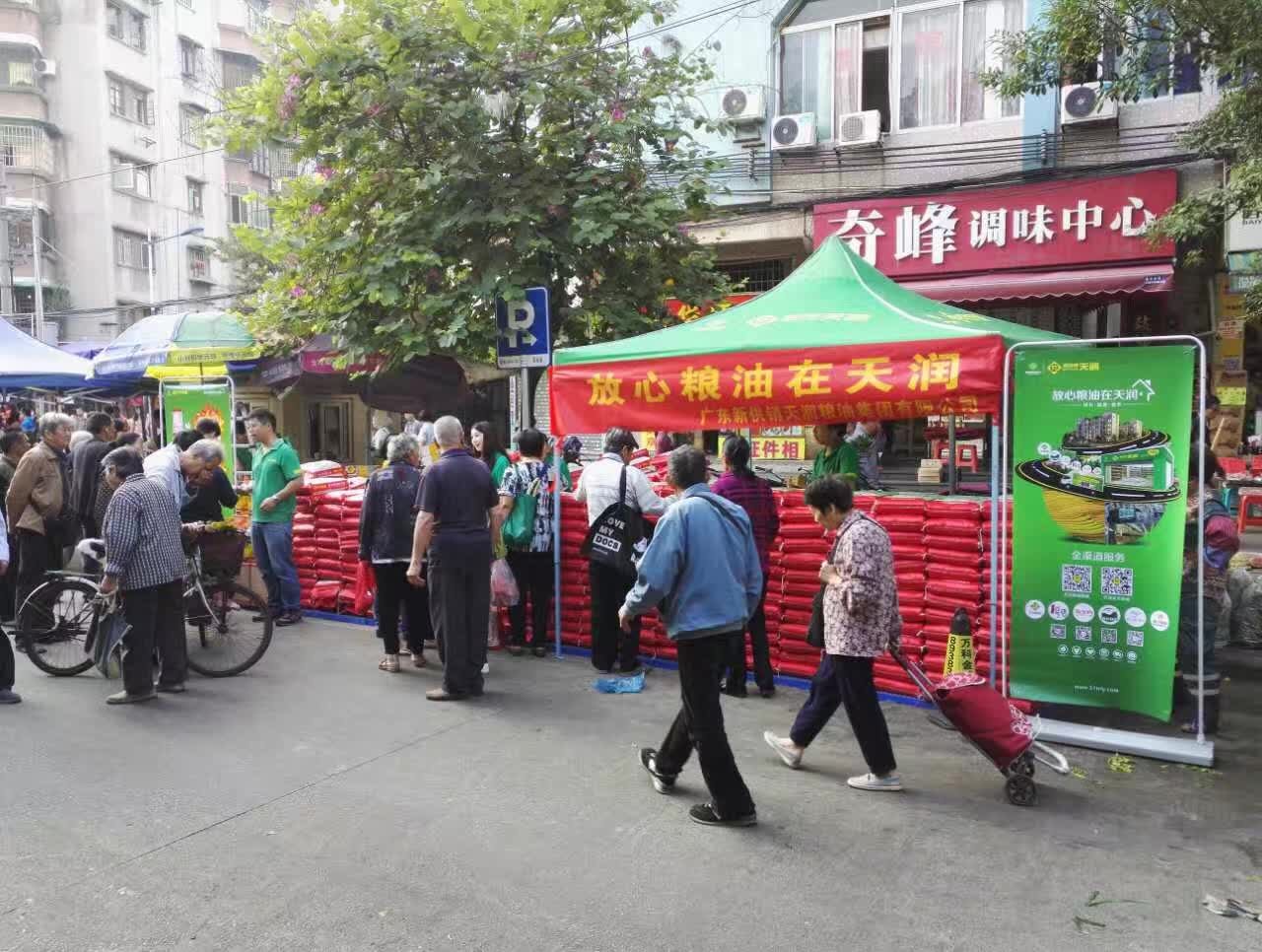 11月5日,广东新供销天润粮油集团有限公司于海珠区沙园西华市场所开展的大型社区活动圆满结束。销售现场,900包大米,1吨天润一级压榨花生油全被抢购一空。