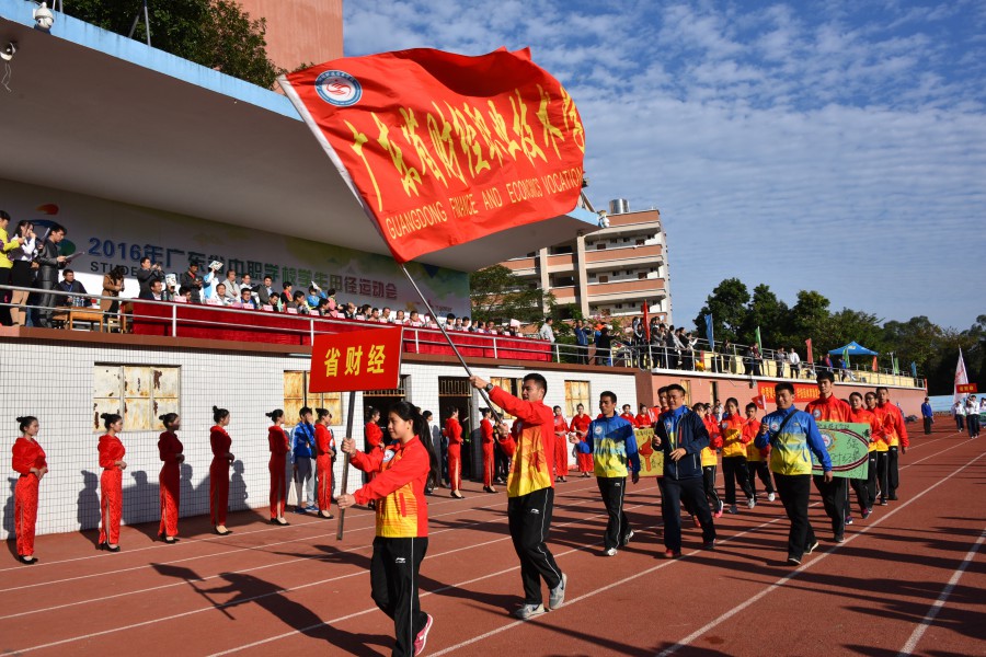 12月8日,2016年广东省中职学校学生田径运动会在广东生态工程职业学院举行了隆重的开幕仪式并组织了第一天的比赛,来自全省的40所中职学校参加了本次赛事,省财经学校钟劲东校长、李广乾副校长、教务科王丹丽科长及以冯家乙老师为首的教练组率20名运动员参加12个田径项目的比赛,比赛首日勇夺四金,男子总分暂居榜首。消息传来,全校师生为之雀跃。