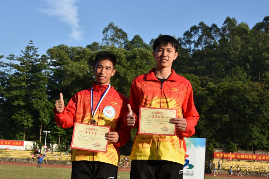 本次赛事分省属学校组和市属学校组,省属学校共有18所学校参加。省财经学校运动健儿把该组的首金、第二金均收入囊中。获得首金的是男子跳高项目,由来自15物流1班骆龙洲同学夺得,第二金来自男子400米项目,由16级天禾班的陈育山同学夺得。值得一提的是,陈育山同学还以52秒29刷新了我校400米项目的最好成绩。第三金的获得者谭嘉荣也来自15物流1班,他夺金的项目是100米短跑。第四金由15营销2班的郑美玲同学夺得,她夺金的项目是女子1500米长跑。