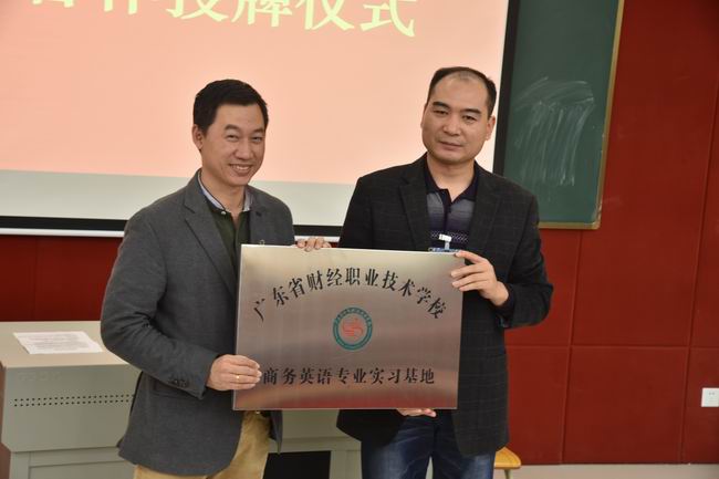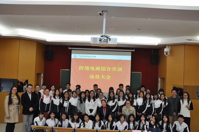 2016年12月7日下午,省财经学校举行商贸管理系校企合作授牌仪式暨跨境电商综合实训动员大会。省财经学校李广乾副校长、广州九鸣教育科技有限公司林俊锋董事长出席仪式并作讲话,九鸣公司院校合作部洪斌经理、商贸管理系苏利群副主任、商贸管理系谢冬梅副主任、商务组组长付茜老师、九鸣企业讲师苏佳铜、黎英琪以及15商务英语2班全体学生参加了本次会议。
