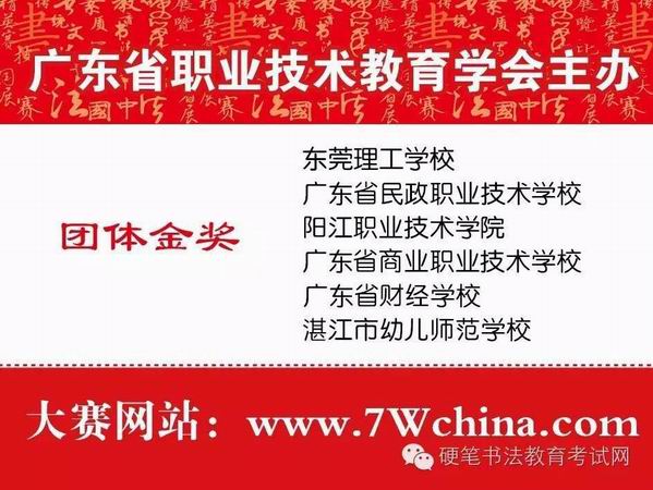 省财经学校五位学生选手,初登赛场,不畏强手,沉着冷静。经激烈较量,我校李嘉烁同学夺得中职学生软笔组一等奖,朱家敏、赖晓琪、林晶晶、冼锦梅四位同学获得中职学生软笔组二等奖,朱家敏同学还获得中职学生硬笔组二等奖。大赛组委会对省财经学校在此次汉字书写技能大赛过程中以赛促学的组织工作与成绩给予高度赞扬,授予我校“第六届广东省职业院校汉字书写技能大赛团体金奖”。