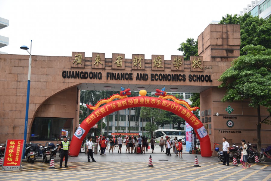 校园到处洋溢着笑脸,充满着温馨的气氛。文化广场LED屏幕上滚动播放着迎接新生的标语:热烈欢迎2017级新同学;百年名校、国家级重点,广东省财经职业技术学校欢迎你;办公大楼上挂着“德技双馨育桃李,知行合一沐春风”的横额格外醒目;校道上挂着的“选择今天,成就明天,财校因你而精彩”条幅令人怦然心动。