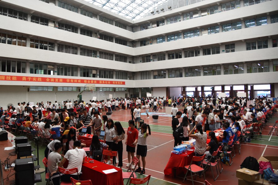 学校领导高度重视新生接待工作,整个新生接待过程井然有序。由招生就业办牵头、各个部门密切配合,做了充分的部署。校外接站、校内接待都安排得特别细致,分别在广州南站(高铁)、省汽车站、天河客运站、滘口客运站、大沥汽车客运站五个地方设有接站点,各系派出老师、学生代表负责接待,免费、安全送新生及家长到学校报到。志愿者协会的同学们精神抖擞,在校门口热情迎接新同学及家长。四大系部分别在教学楼一楼大厅、体育馆按班级设立接待站,班主任、副班主任(由二年级学生担任)耐心、细致为新同学提供服务;有些系在每间宿舍都安排一个老师在等候新生并即时为新生和家长提供咨询和答疑及其他相关服务;教务科、学生科、财务科协同办公,为新同学提供一站式服务;后勤行政部门为构建良好的接待环境及早做好了充分准备;宣传部门也提前三天通过学校微信公众号发布新生入学须知及专业分布,告知新生和家长们准备事项;劳动值周的学生也在认认真真打扫校园,为新生和家长送上一份整洁和谐校园面貌的见面礼。