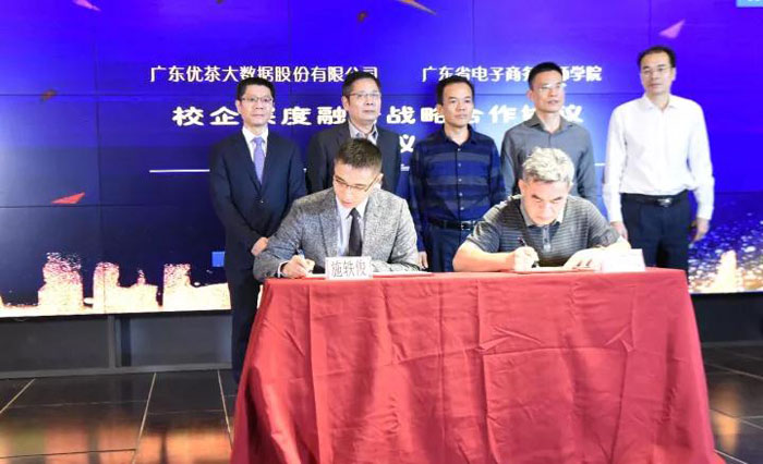 施轶俊、彭仲文分别代表广东优茶大数据股份有限公司、广东省电子商务高级技工学校签订了《深度校企合作协议》。