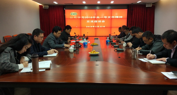 2月22日,新供销商贸公司党支部书记、董事长黄庆福同志在总部主持召开学习2018中央一号文件(关于实施乡村振兴战略的意见)精神座谈交流会,新供销商贸公司全体中层以上干部和总部部分职工参加了会议。