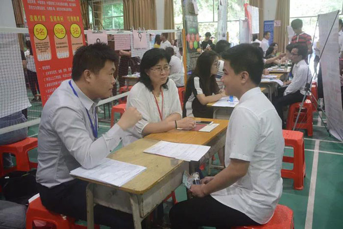 招聘会当天天气炎热,会场内设置了空调、风扇等降温设备却依然抵挡不了前来应聘的学生热情,大部分学生穿着正式、整洁,现场人头攒动。“为了给面试官留下好印象,除了准备简历,还特别注重自己的仪容仪表,特意穿着正装来应聘”广告高162班的陈丽萍如是说。据了解,为了让学生在应聘时能从容应对,学校专门为学生开设了礼仪、形象、着装等方面指导讲座或课程,同时也开展求职安全、求职心理调适等指导讲座,多方面指导学生顺利走出校园,开展社会生活。