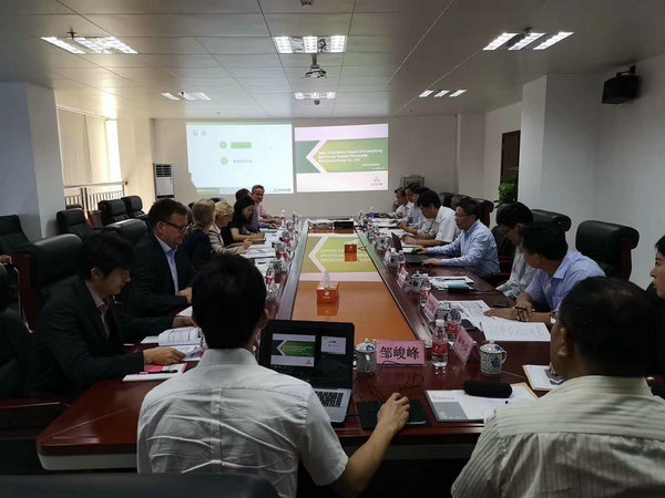 座谈会上,陈江强代表天保集团对Gisela Hammerschmidt女士一行的莅临考察指导表示热烈欢迎,并详细介绍了天保集团鹤山基地的发展历程、经营模式、德贷项目的总体情况和建设进度等内容;随后双方重点交流了国家政策变动对德贷项目当前及未来的影响、天保集团所采取的应对措施等问题;Gisela Hammerschmidt女士对天保集团的发展理念和德贷项目的建设进度表示高度认同和赞赏,希望天保集团继续努力将项目建设成为中国固废资源化利用的国家级重点示范项目和中德财政合作的明星项目,同时也希望借本项目进一步促进中德两国的环保技术和人才交流,共同推进全球环保事业向前发展。