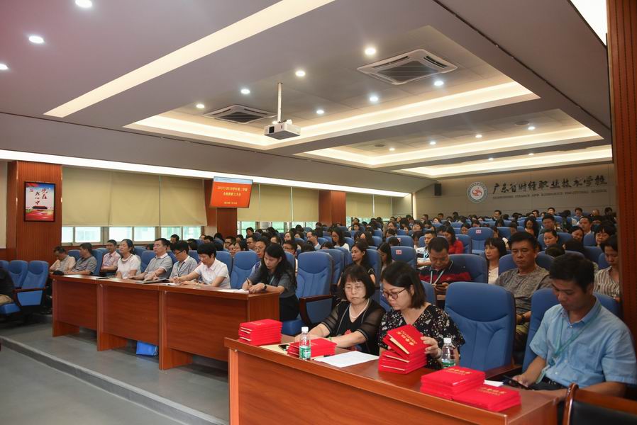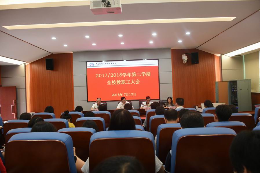 2018年7月12日,省财经学校在实训楼二楼多功能报告厅召开2017/2018学年第二学期期末教职工大会。党委书记、校长钟劲东,副校长周永生、李广乾、吴瑞明出席会议。会议由周永生主持,全体教职员工参加了会议。