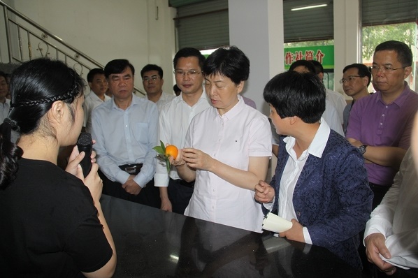 项目扶贫是产业扶贫的重要形式,也是供销合作社扶贫工作的突出特点。调研期间,王侠先后来到九龙果业专业合作社、中国供销赣南脐橙交易中心了解情况。九龙果业专业合作社是安远县安圣达果业有限公司下属农民专业合作社,安远县供销合作社入股领办,主营脐橙、蜜桔、猕猴桃等农产品的种植、加工、冷藏、销售业务。2015年,总社安排600万元项目资金支持其产销对接项目,利用合作社的加工、销售优势,收购贫困户种植的猕猴桃,建设生产基地2000余亩,带动周边农户1400多户,实现户年均增收1050元,解决了贫困户的销售难题,成为产业扶贫的模范。王侠强调,九龙果业专业合作社立足于当地产业基础好的优势,在做好传统脐橙销售的基础上,引进猕猴桃品种,通过优化种植结构,促进社员销售收入大幅增长,这个做法值得肯定。王侠指出,项目扶贫就是要选择产业基础好、带动农户能力强、发展前景好的产业,对接带动建档立卡贫困农户,让有限的资金发挥最大的功效。