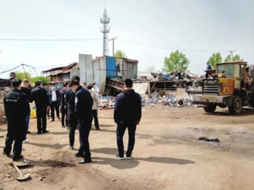 近日,由黑龙江鹤岗市供销合作社牵头,联合公安、消防、应急、市场监督、生态环境、城市管理、住建等部门联合执法,对经一路两侧三户再生物资回收经营站点进行了检查。检查中发现这些站点存在环保不达标、私搭乱建、回收禁收物品等问题,相关部门依照职能权限对站点进行了处罚,责令停业,限期搬迁。