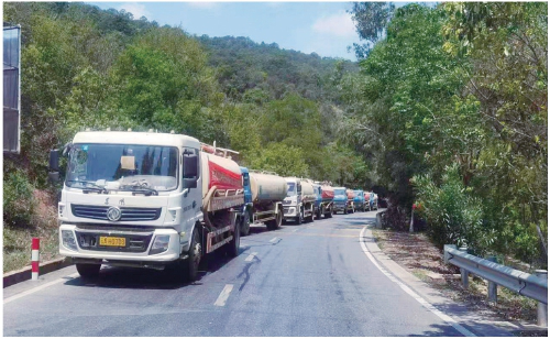 禄丰市粪肥还田专业化运输车队正在运送液体粪肥。资料图